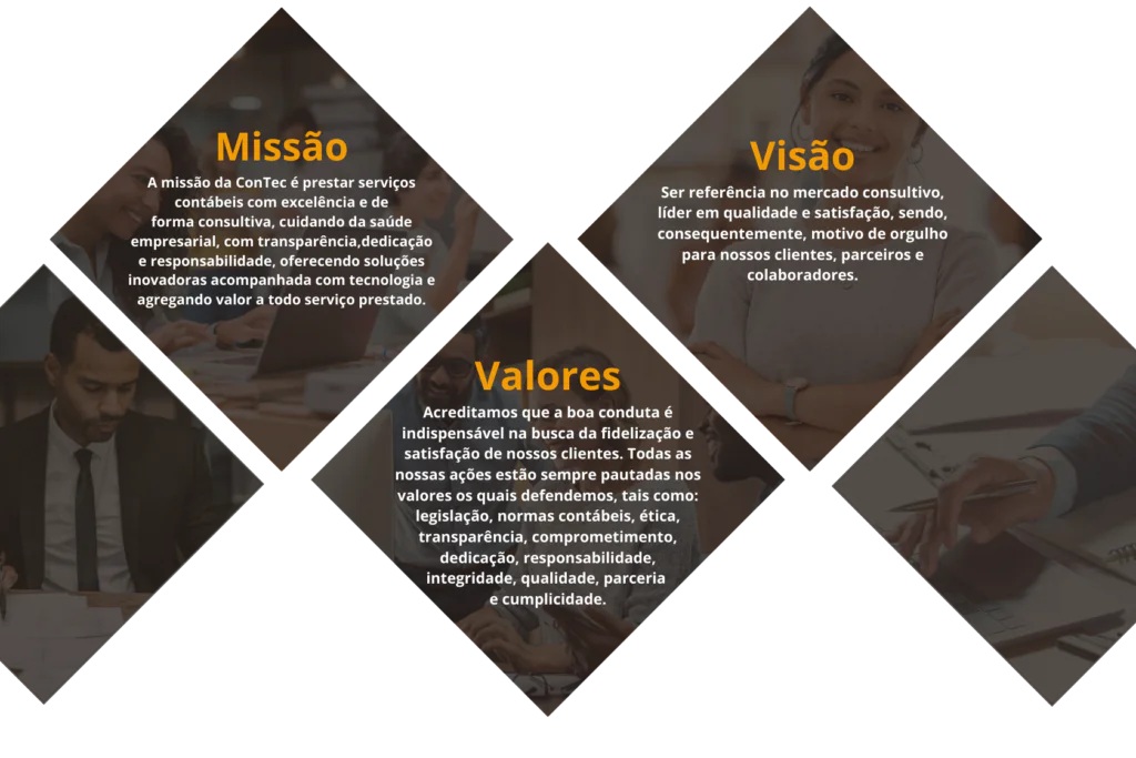Nós, da ConTec, acreditamos que a boa conduta é indispensável na busca da fidelização e satisfação de nossos clientes. Todas as nossas ações estão sempre pautadas nos valores os quais defendemos, tais como: legislação, normas contábeis, ética, transparência, comprometimento, dedicação, responsabilidade, integridade, qualidade, parceria e cumplicidade.